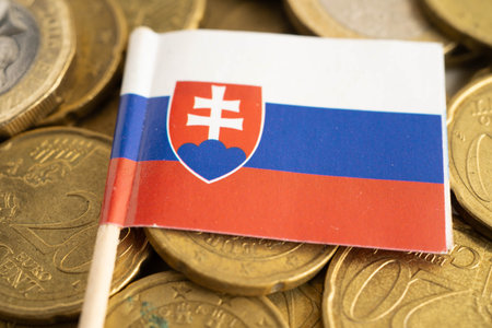 Slovakia flag on coins background, finance and accounting, banking concept.
