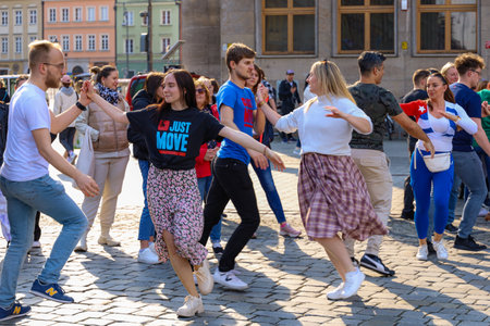Wroclaw, Poland - April 2022: Rueda de Casino open event at market square