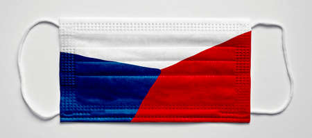 Czech Republic flag. PANDEMIA. Medical mask, Medical protective mask on a white background.Healthcare and medical concept.