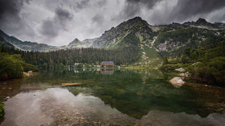 Beautiful mountain lake landscape. Popradske Pleso, Tatra National Park, Slovakia.