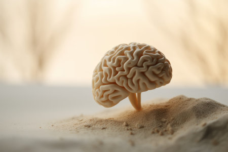 Human brain model on sand, closeup. Concept of artificial intelligence