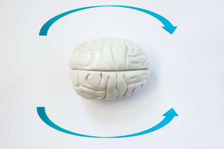 Symptom of Vertigo or head is spinning photo concept. Shape of human brain lies surrounded by arrows that indicate direction of Vertigo. Symptom and sensation of many diseases of brain and inner ear