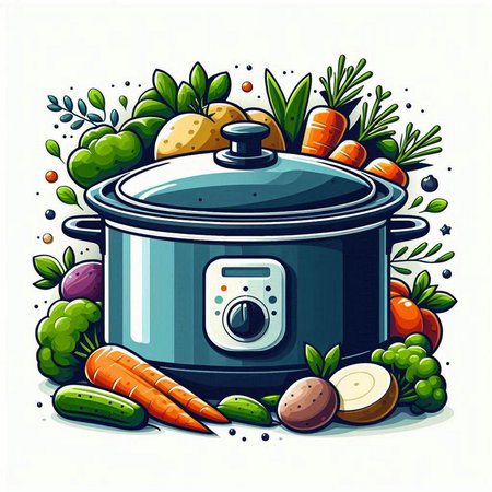 slow cooker cooking a vegetarian meal, variety of veggies, created with generative ai