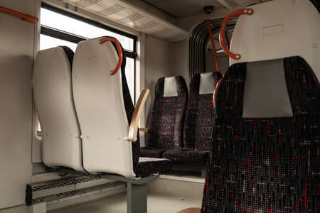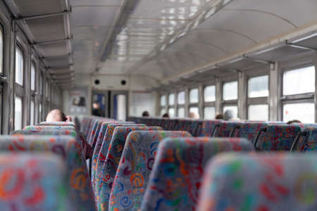 Sydney, Australia - November 14, 2014: Sydney trains coach interior with soft seats. Sydney transportation, infrastructure