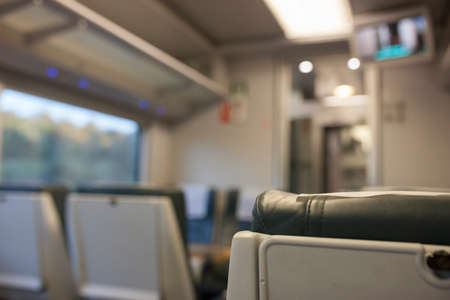 Blur background of Interior of train in Hakodate, Hokkaido Island, Japan.