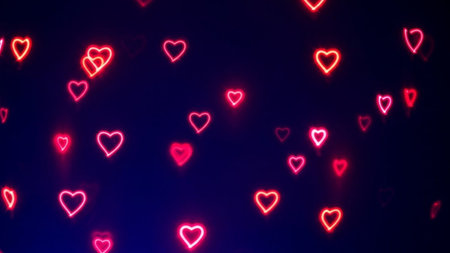 Heart-shaped confetti creates a romantic atmosphere against a dark backdrop