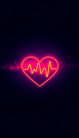 Engaging visual of a neon heart symbol alongside a pulse waveform, set against a dark backdrop, embodying essence of love, vitality, and vibrant energy.