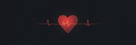 Minimalist Red Vector Heartbeat Line with a Glowing Heart on a Dark Background, Health Illustration