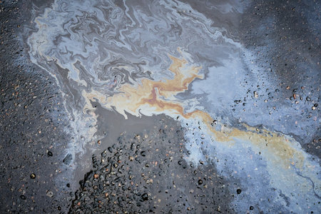 Oil stain on Asphalt, color Gasoline fuel spots on Asphalt Road as Texture or Background