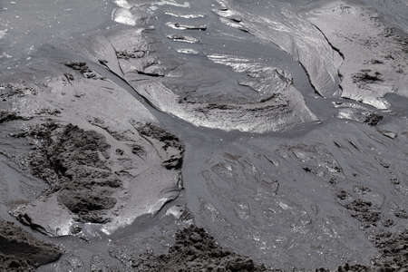 Abstract texture of thick sticky dark mud wall with viscous patterns