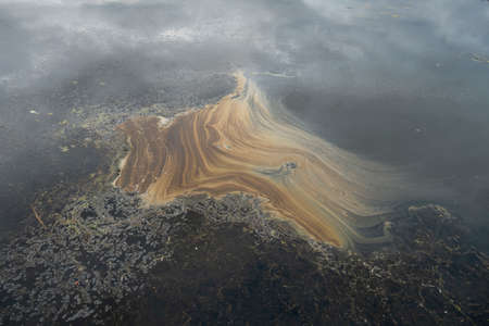 pollutant stains from industrial oil, petroleum, chemicals in water