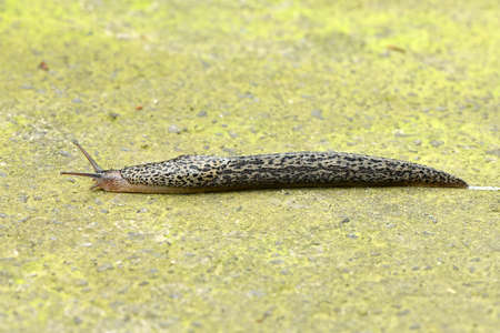 Closeup of leopard slug on the floor on top view