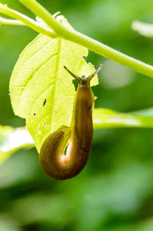 Snail of the family Limacid brown on the ground
