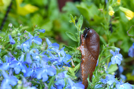 a slug in the garden is fought with slug pellets. remedy against snails plage