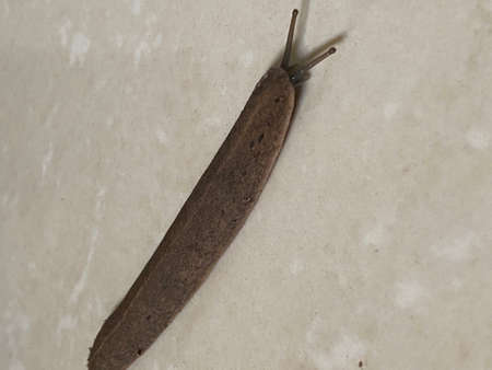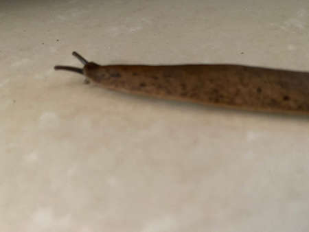 The gastropod slug moves along a horizontal surface.