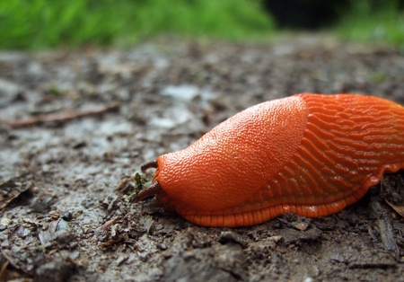 The slug crawls on the ground