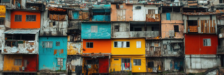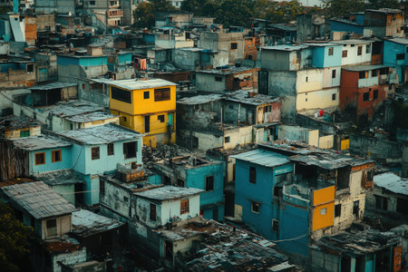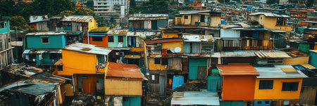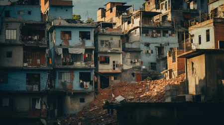 fictional slums favela of dense residential buildings in a large city