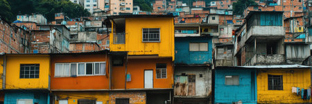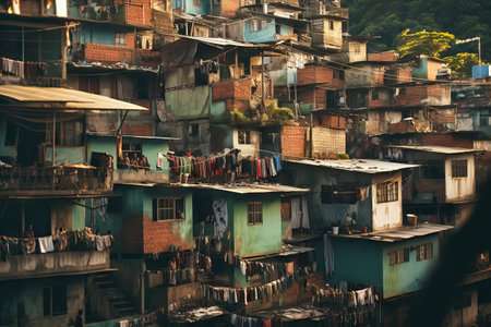 Generative AI, Brazilian favelas community, panoramic view with many houses, urban town poor house buildings