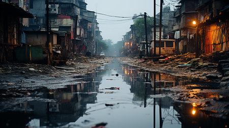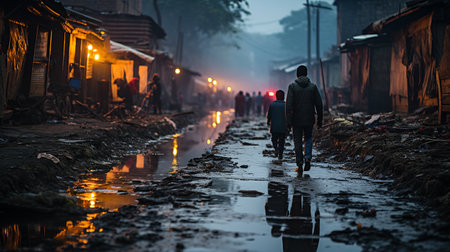 Disadvantaged people living in poverty background. Desolate street. Generate ai