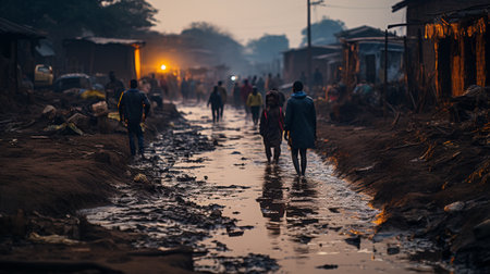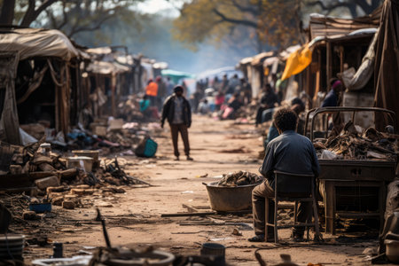 Resilient people living in poverty background. Desolate street. Generate ai
