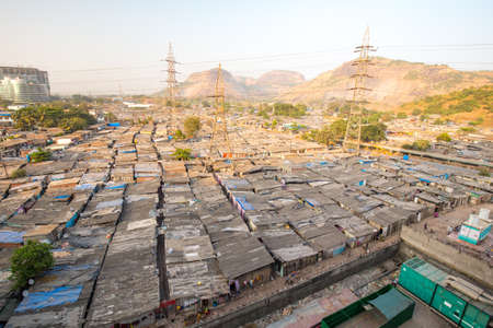 Poor and impoverished slums of Dharavi in the city of Mumbai.
