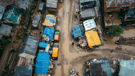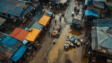 Generative AI : Dhaka Bangladesh 24 January 2023 Aerial view of people working in a local food market
