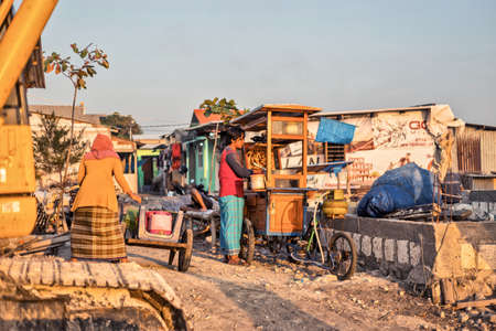 Surabaya, Indonesia - February 13, 2019: Villager of surabaya preparing for bisness in the morning at the Kenjeran beach in East Java