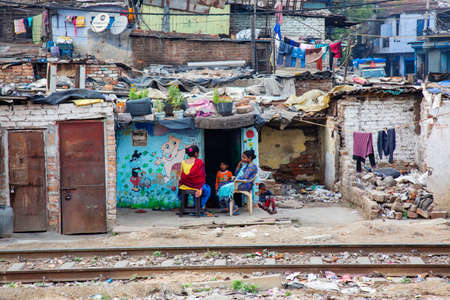 Delhi, India, March 2, 2020: Delhi suburbios train railway poverty habitat