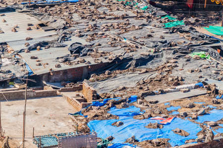 Mumbai, India - February 26, 2019: On the street in Dharavi Slum at Mumbai. Top view