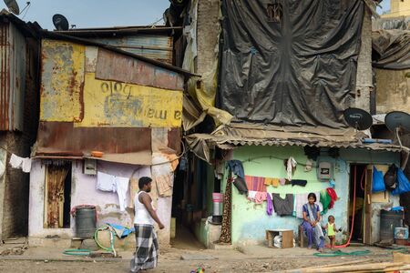 Mumbai, India - February 26, 2019: On the street in Dharavi Slum at Mumbai