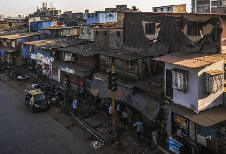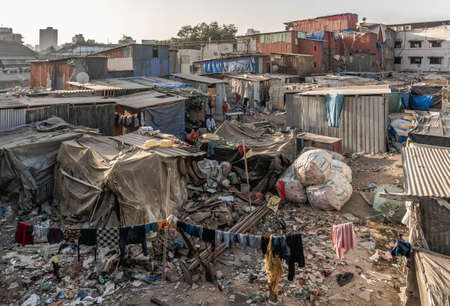 Mumbai, India - December 17, 2018: Poor and impoverished slums of Dharavi in the city of Mumbai.