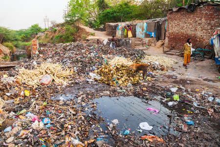 AGRA, INDIA - APRIL 10, 2012: A lot of garbage on the street in Agra city, Uttar Pradesh state of India