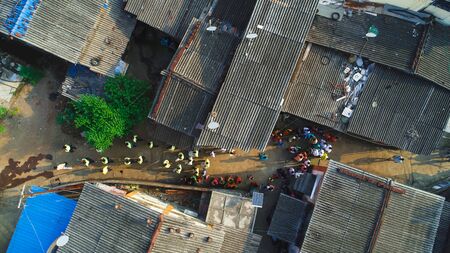 Aerial view of slums in Mae Hong Son, Thailand.