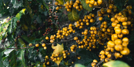 Yellow berry coffee at the coffee tree,Yellow coffee beans