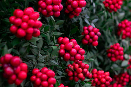 Floral autumn background or texture.Bush with autumn berry, green leaves.