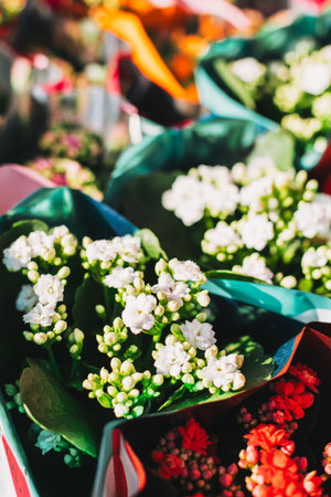Close up of colorful flowers in a flower shop. Selective focus.
