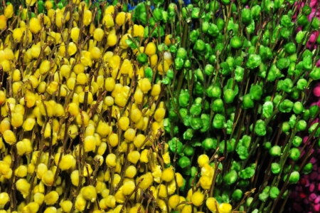 Bunch of colorful flowers in the market, close-up.
