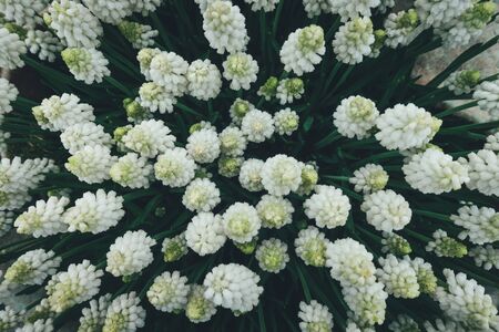 View from above on white spring flowers.