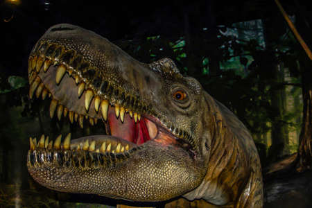 Dinosaur head, close up of a dinosaur head with open mouth