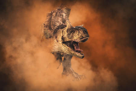 Carnotaurus Dinosaur on smoke background