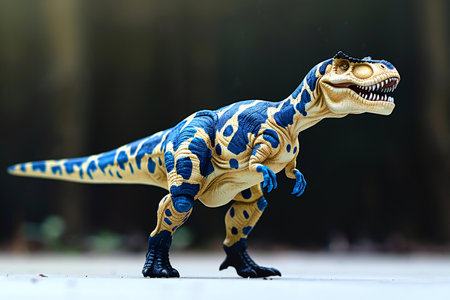 Tyrannosaurus Rex plastic model, closeup of photo.