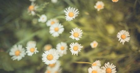 Beautiful vintage daisy flowers top view peaceful bright nature closeup soft petals and delicate details creating a serene floral scene perfect for spring and summer inspiration
