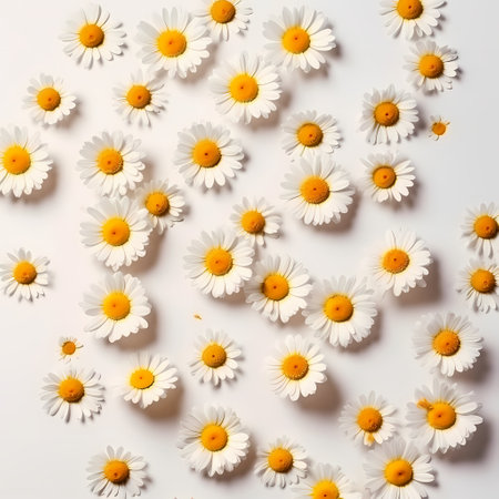 Elegant Floral Design Layout Featuring Aesthetic White Chamomile Flowers with Copy Space Area