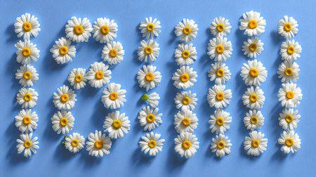 This captivating image features fresh white daisies arranged to form the numbers 1, 3, and 1 on a gentle blue backdrop. Perfect for creative projects!
