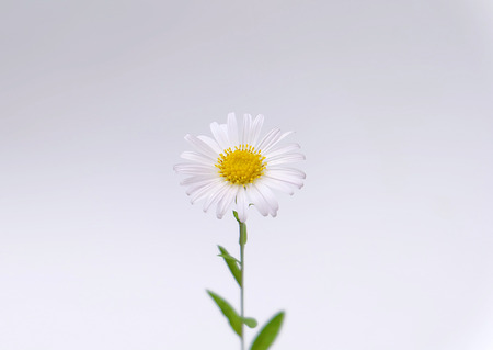 White daisy flower isolated on bright yellow background studio shot