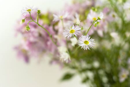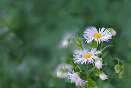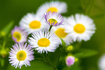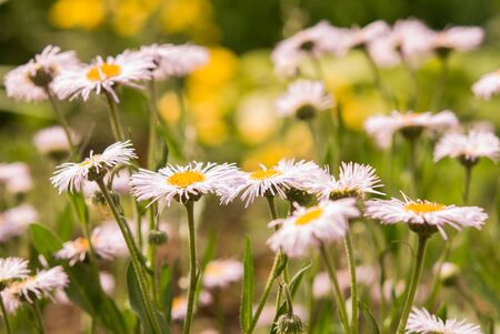 Flowers of white Erigeron (family Asteraceae), blooming in the summer