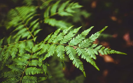 Natural closeup fern leaf agains shallow depth of field for background and environment concept