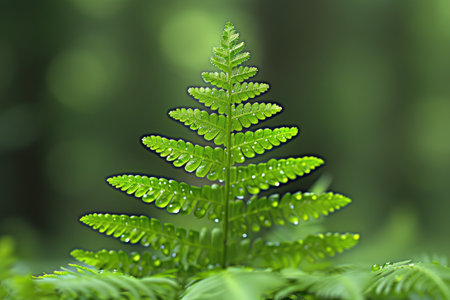 Green fern leaf on blurred greenery background with bokeh effect