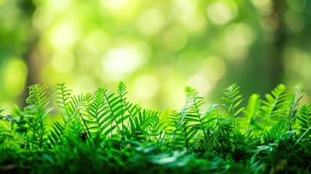 Lush green ferns in a serene forest setting
