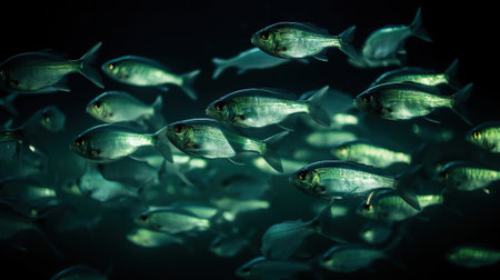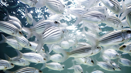 fish swimming in school, creating mesmerizing pattern, created with generative ai